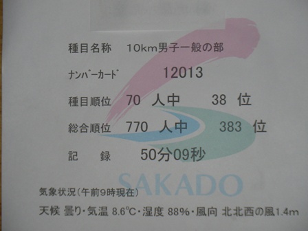 いやぁ~行ってまいりました坂戸チャリティマラソン!小雨の中でのスタートでしたが、体調も万全で望むことができました。