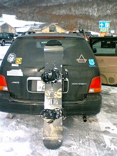 みなさん、こんにちはCです!板が届きましたので早速実家から一時間ぐらい程の距離にあるグランデコに行ってきました。今日は試運転って感じでのんびりトレーニングをしました。まずはサイドスリップから始まりノーズドロップなど様々な練習をしました。板はとても乗りやすく長さを感じない程取り回しがいいですね。あとは使っている自分がうまくなるだけです。ロングターンの切れがいまひとつなので頑張って練習します…写真のほうは恥ずかしいのでバッグはオンボロの愛車にしました